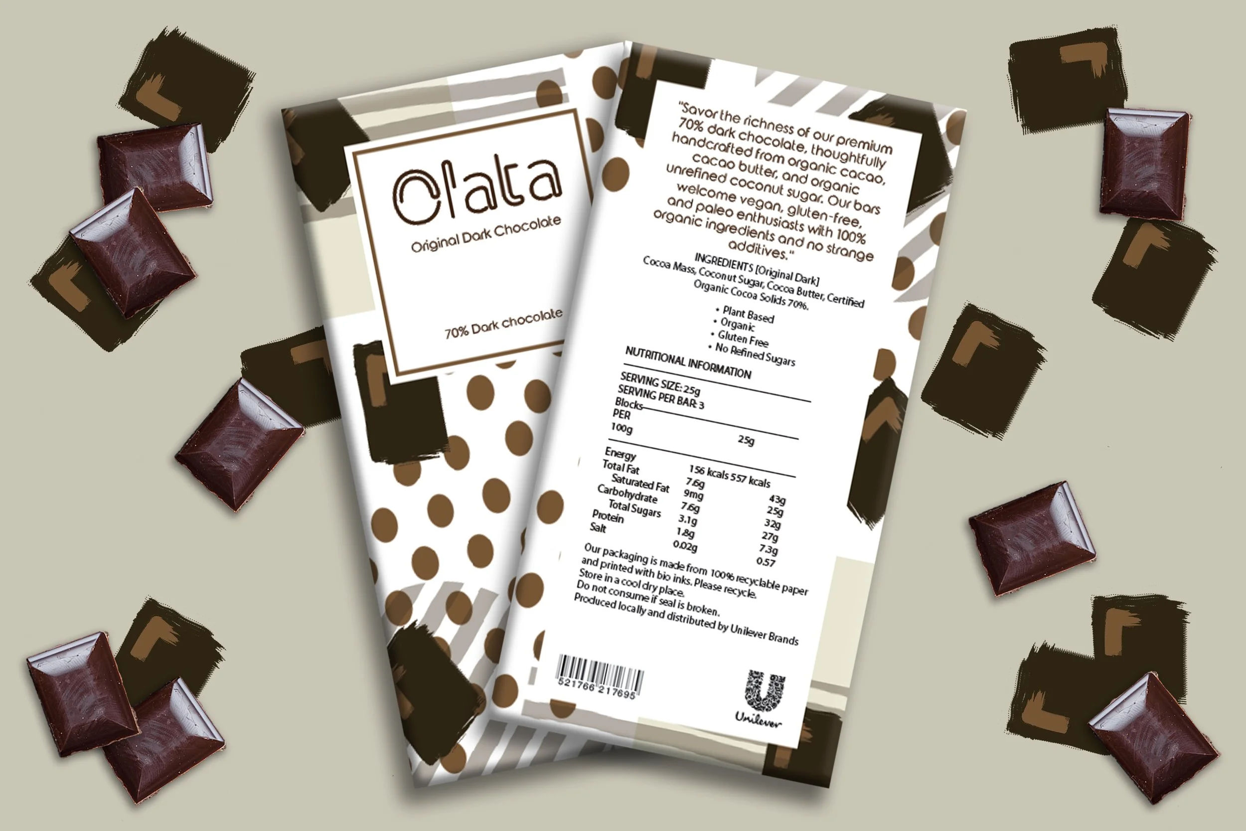 Olata is a dark chocolate bar based in turkey. It was created by a chemical engineer who wanted to create a dairy-free chocolate that didn’t compromise on taste to honor her family tradition of dipping dark chocolate in Turkish coffee but with a healthier option. This design is inspired by indulgence and confection. I wanted to create an abstract design for the non-dark chocolate lovers to look at and intrigue their curiosity with its fun appeal.